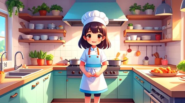 Chef in Bright with Modern Kitchen.