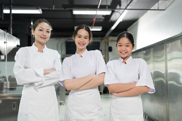 Professional chef and team in modern kitchen