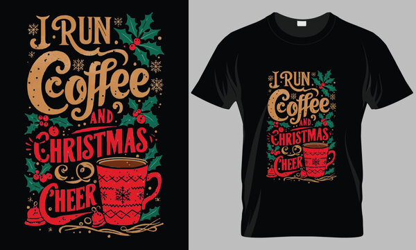 I RUN COFFEE AND CHRISTMAS CHEER - Christmas typography vector T-shirt design. motivational and inscription quotes.