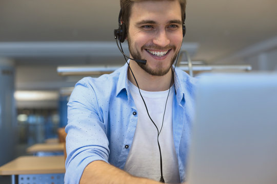 Cheerful male customer service operator at work.