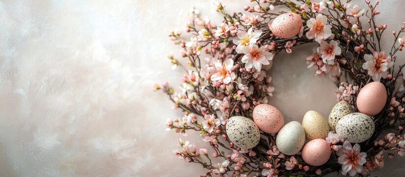 Colorful Easter eggs with floral patterns celebrating spring festivities. Ideal for holiday greeting cards, decorations, and seasonal marketing.
