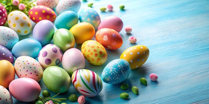 Embrace the spirit of Easter with cheerful eggs nestled in a serene blue background. Join the celebration filled