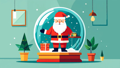A cheerful scene with hanging lights, a plush bunny, and potted plants set against a blue backdrop