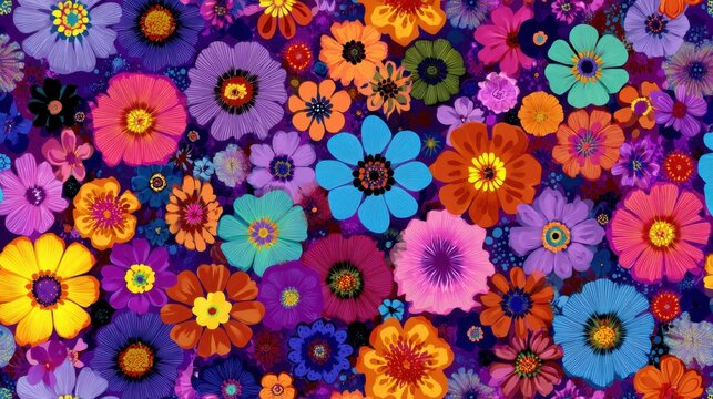 A colorful flower arrangement with a rainbow in the background. The flowers are arranged in a circle, with the rainbow in the center. Scene is cheerful and bright
