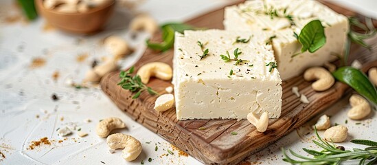 gorgonzola. Artfully arranged selection of fine cheeses and cured meats on a rustic wooden board, top-down view. menu design.