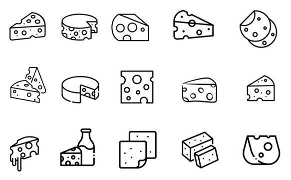 Cheese Doodle hand drawn line icon set. Different piece slice cheese for menu, design restaurant, cafe. Vector illustration