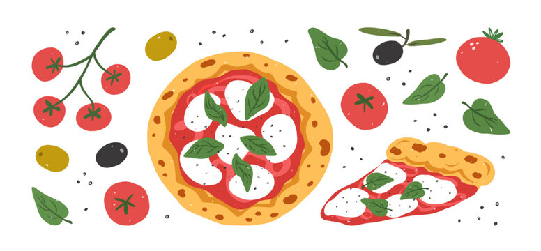 Food Vegetables and Fruits. Vegan, plantbased, vector illustration set