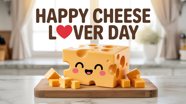 Happy cheese lover day celebration with a cute animated cheese block