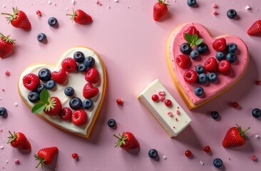 A heart-shaped strawberry cheesecake with a graham cracker crust and fresh strawberries on top Valentine day Special