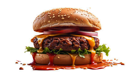 tasty beef burger png image or transparent image - tasty cheesy beef burger isolated on white or transparent background for commercial use.