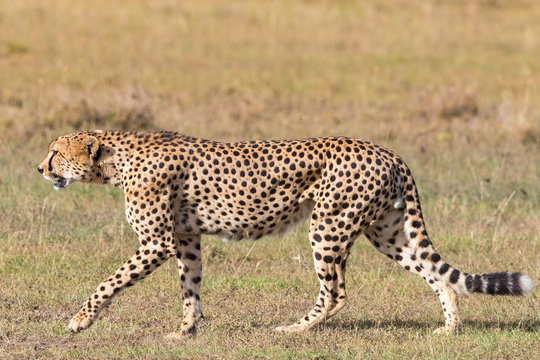 single cheetah walking on the savannah in the Maasai Mara