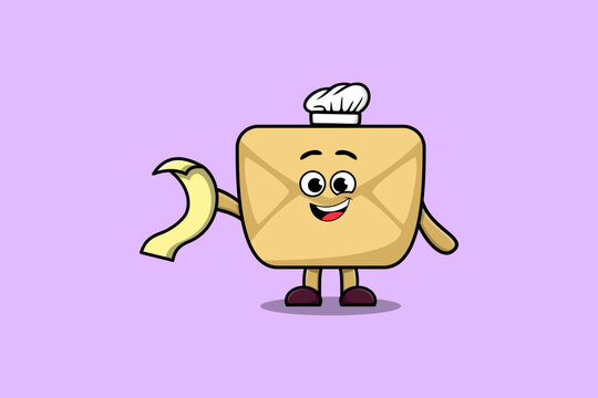 Cute cartoon Envelope chef character with menu in hand cute style design illustration
