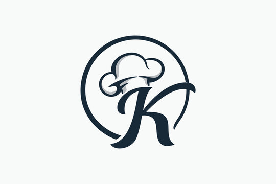 chef logo with a combination of letter k and chef hat for any business especially for restaurant, cafe, catering, etc.