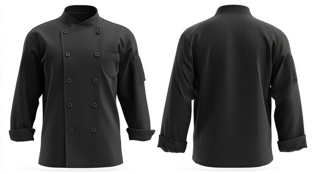 Black chef jacket mockup professional tunic template Front and back views 3D rendering 3D illustration