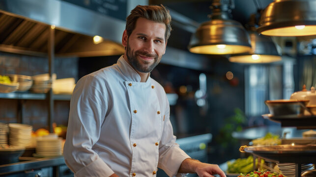 Confident chef promoting culinary cooking classes