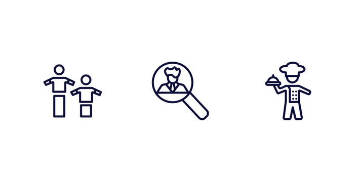 set of people thin line icons. people outline icons included team work success, recruit, cooker with tray vector.
