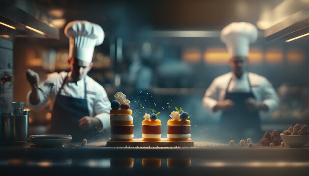 Culinary excellence illustrating skilled chefs in professional kitchen
