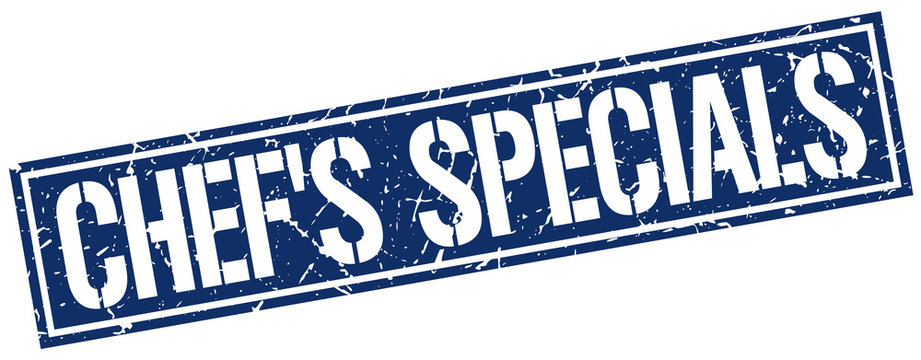 chef's specials stamp. chef's specials vintage blue label. Sign