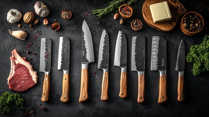 Culinary essentials: Cooking wooden board on wood table table. Flat lay with copy space