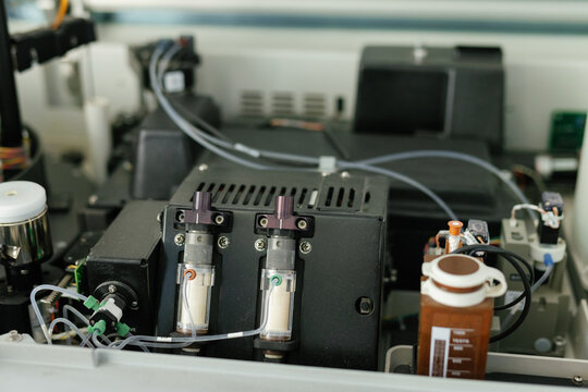 Concept of chemical, scientific experiment, monkeypox virus. Closeup, copy space on right. Chemistry experiments in science labs. Drop chemical matter into test tube place on desk. Blurred background