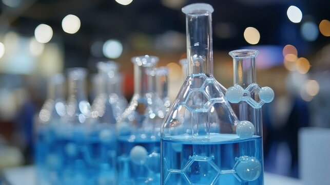 Blue Liquid in Glass Scientific Flasks at a Conference
