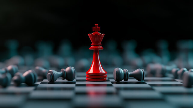 striking red queen chess piece stands tall amidst fallen pawns, symbolizing victory and strategy in game of intellect