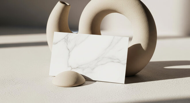 Minimalist marble business card invitation mockup with decorative objects