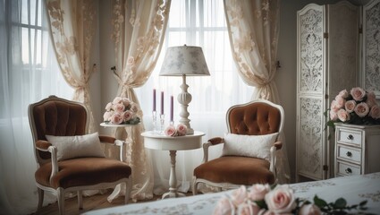 seamless pattern with pink flowers, Tiny pink roses on a white background, a vintage shabby chic style pattern.