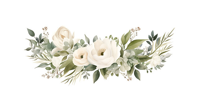 Watercolor green floral illustration on white background. Leaf frame, border, for wedding stationary and greetings