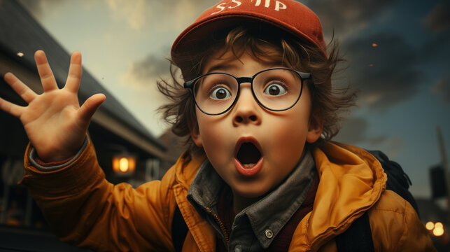 Young girl holds glass charity jar filled coins. Warm background promotes generosity, kindness. Happy child giving money for donation, support. Ideal for advertising fundraising campaign, financial