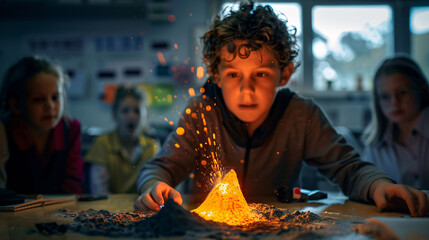 Diverse schoolchildren engaged in chemistry experiment for science week