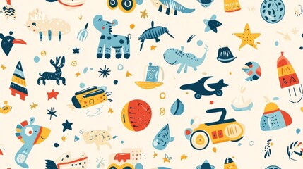 A seamless pattern of cute cartoon toys. Kid friendly background