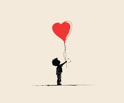 A child holding a glowing heart in a snowy night. Concept of kindness and help