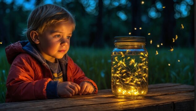 A child holding a light bulb as a symbol of an idea. The concept of creative and imaginative thinking. Eureka.