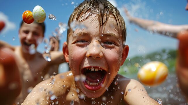 A dramatic close-up of a young boy in a fit of rage contrasted by a fiery explosion. Perfect for promotional materials related to children's events, action movies, or artistic expressions.