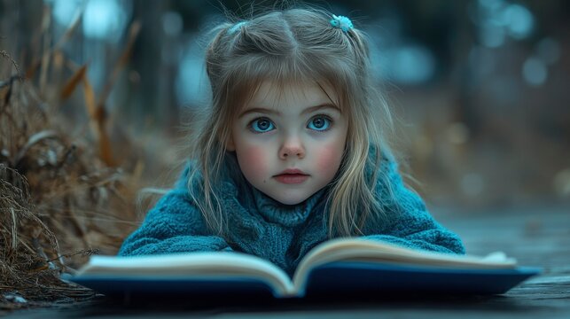 Biracial girl enjoying book week celebration with enthusiastic curiosity