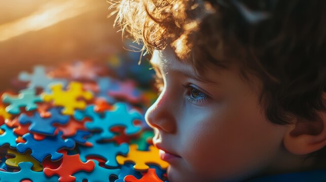 Thoughtful Boy with Puzzle Pieces