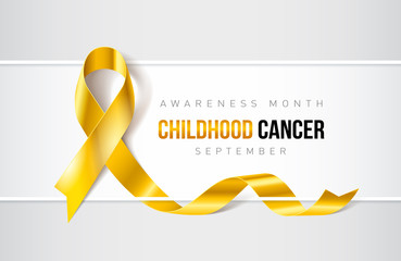 Childhood Cancer Awareness Month. Gold Color Ribbon Isolated On Transparent Background. Vector Design Template For Poster.