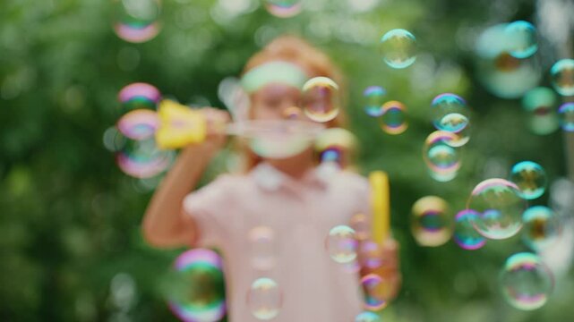 Bubbles floating in a sunlit garden create a serene and magical outdoor atmosphere