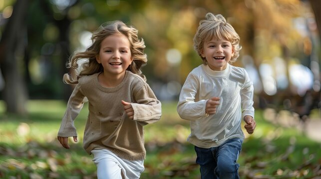 Children Playing with Bubbles in the Park - Joyful Moments of Childhood