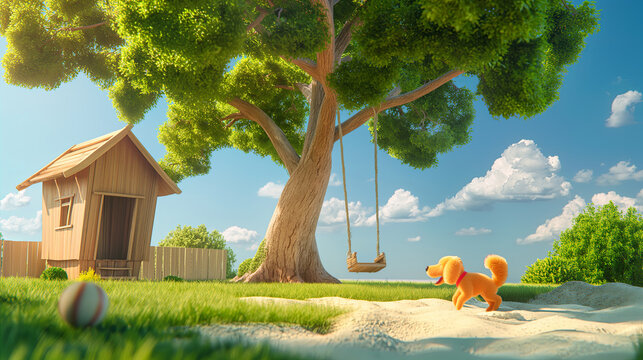 12 year old child dressed teenage clothing and wearing wolf mask crawls playfully sunny lawn surrounded detailed grass and clouds
