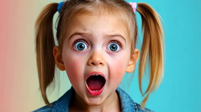 Amazed young black child with wide eyes standing in front of vibrant vertical stripes, radiating a sense of wonder and astonishment