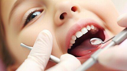 Cute kid show her teeth to dental assistant