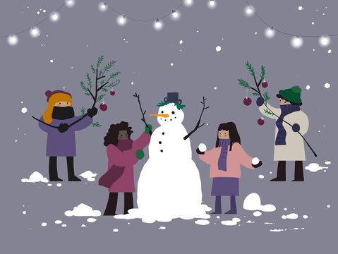 Group of joyous kids exchanging gifts at a festive event. Perfect for holiday greeting cards and school event promotions.