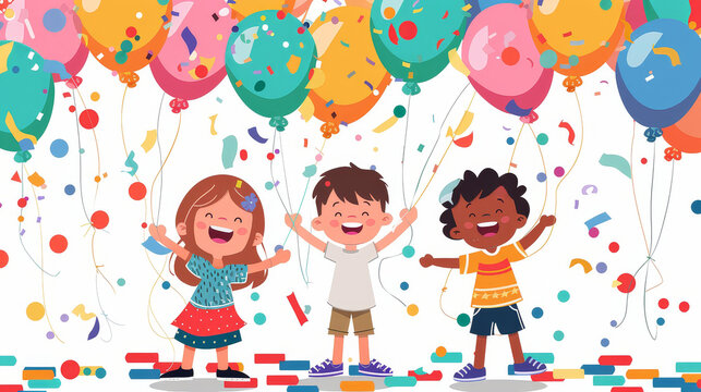 Exuberant Holi Festival Colors Explosion. Joyful children celebrating Holi with vibrant colored powders in the air, festive mood.
