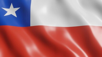Chile national flag cloth fabric waving on beautiful cloudy Background.