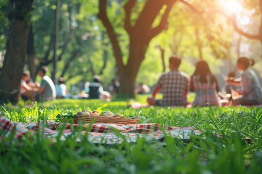 A group of people sitting together on a vibrant green field, enjoying the outdoors