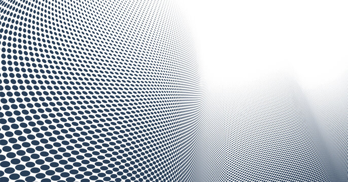 Grey dots in 3D perspective vector abstract background, dotted pattern cool design, wave stream of science technology or business blank template for ads.