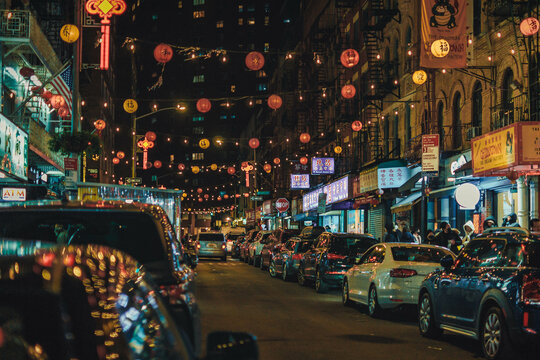Street view of Chinatown district of New York City, one of oldest Chinatowns outside Asia.