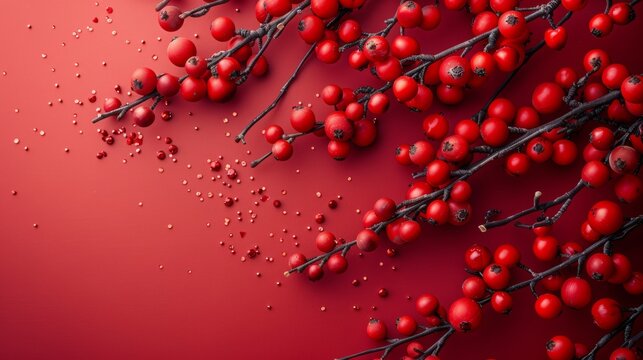 Chinese new year vibrant red decorative flat lay with good fortune symbols